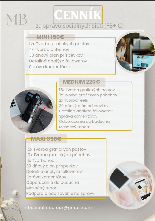 Ukážky profilov mojich klientov a reálnej práce na sociálnych sieťach.